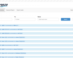 Aktivitetsloggen är en realtidsuppdaterad översikt över all aktivitet i systemet. Datan kan analyseras av administratörerna för att säkerställa service av hög kvalitet och transparens i leadshanteringen.